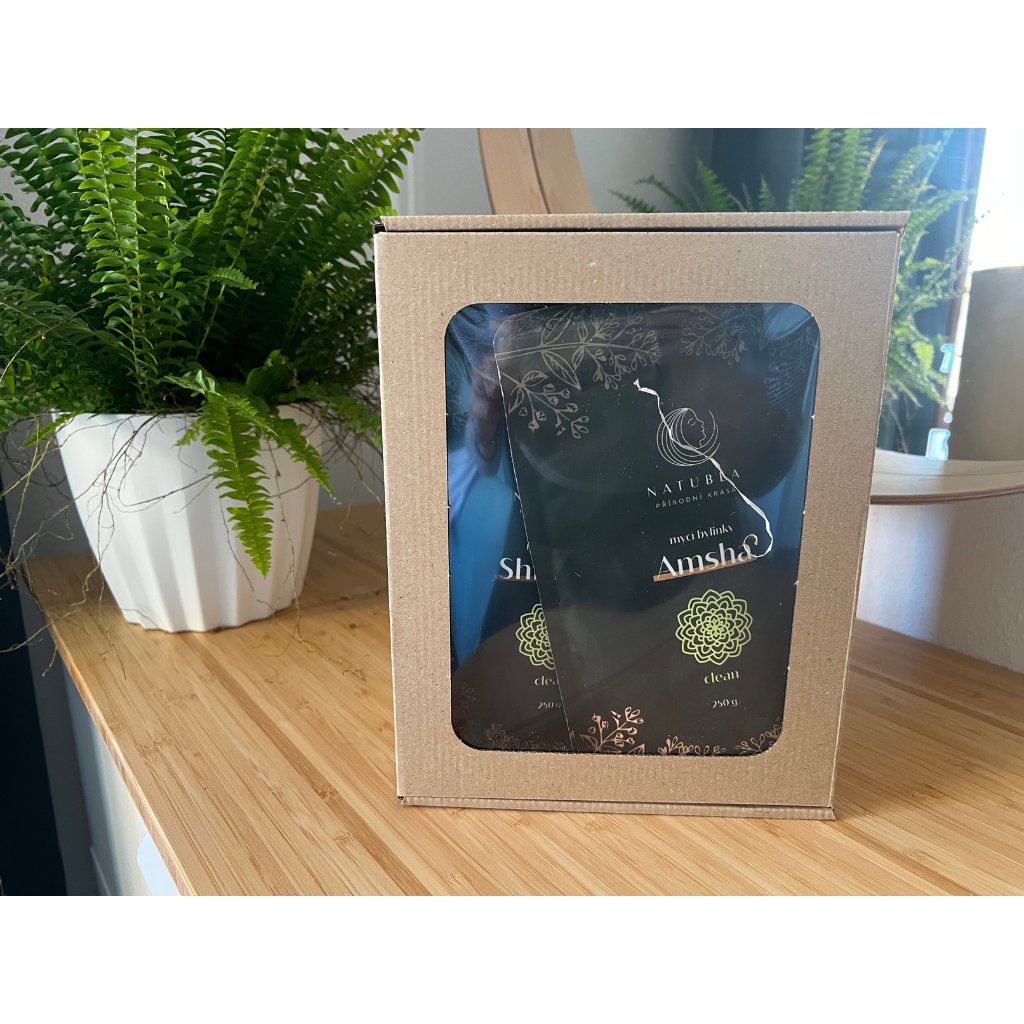 - Obsah balíčku: 2x ajurvédské byliny od NATUBEA 250 g (Amsha, Shikakai), 1x směs bylin na oplach 50 g, 1× aplikační lahvička.